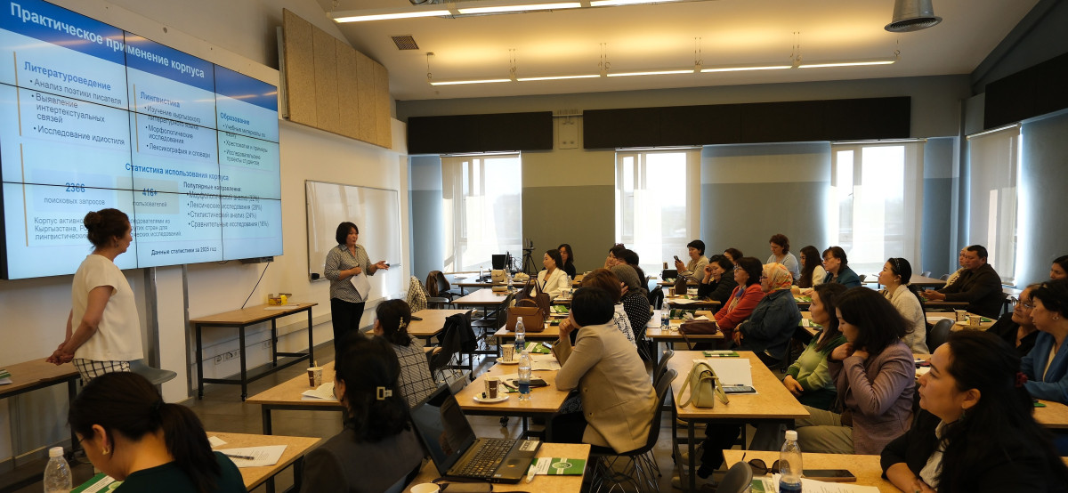 С ключевым докладом на тему «Корпусная лингвистика как методология исследования» выступили доктор Гульнура Джумалиева и доктор Аида Касиева из Кыргызско-Турецкого университета «Манас», которые представили инновационный текстовый корпус Чынгыза Айтматова.