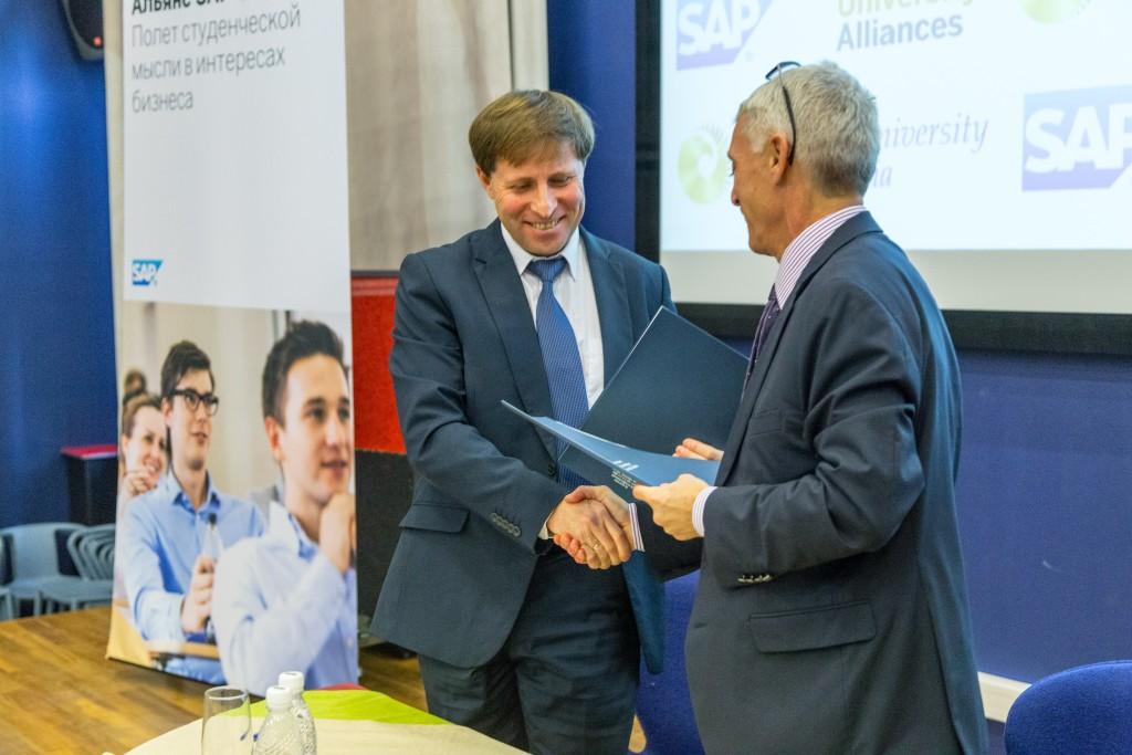 The membership ceremony also included a presentation by Belousov about digital transformation, SAP’s key activities, products and partners. SAP gives solutions and provides software for many famous companies like Apple, BMW, Harley Davidson and the German Hockey League. The presentation went more in depth about how SAP helps the German national football team prepare for matches, underscoring that SAP builds systems and applications not only for business, higher education and production companies, but also for sports, transportation, medicine and for many other spheres.