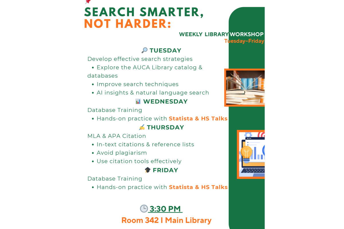 The Library invites you to our weekly workshops! If you need help searching for resources or formatting citations, join us for personalized support.