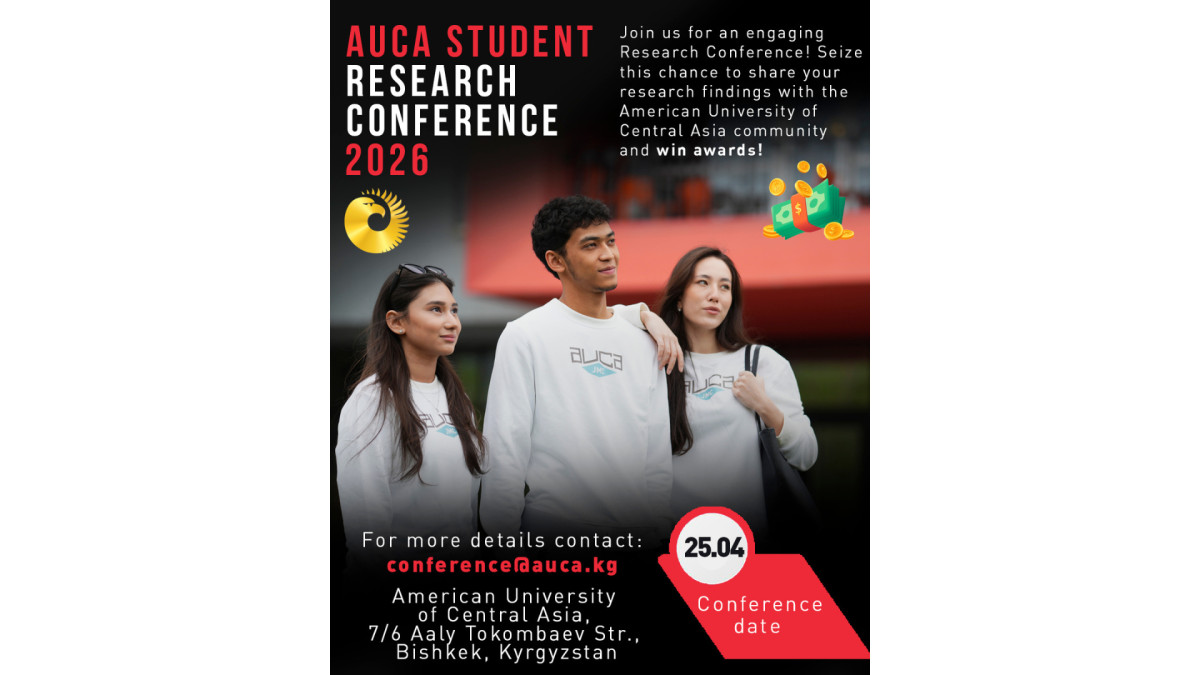Join us for the Student Research Conference 2026 at the American University of Central Asia! The conference will be on April 25, 2026, 9:00-15:30 on our vibrant AUCA campus, providing a unique platform for graduate and senior-level students to showcase their groundbreaking research across various disciplines.