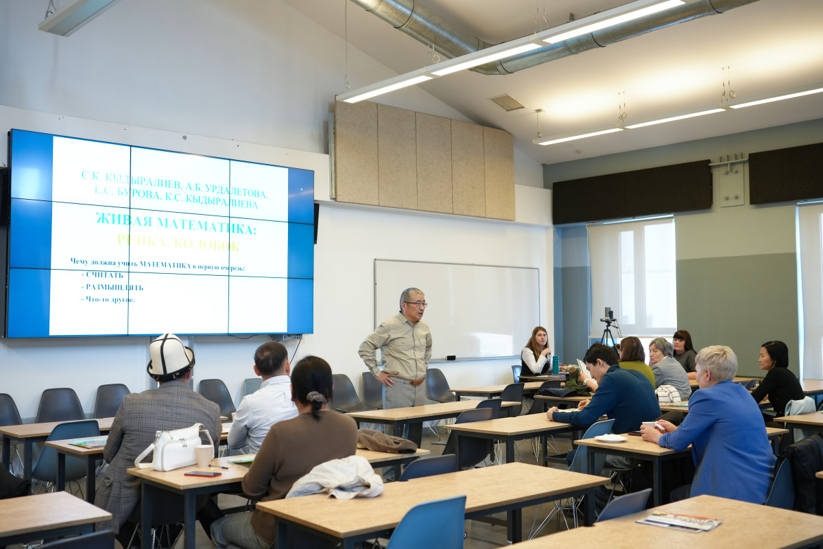 Занятие было посвящено преподаванию математики в начальной школе, провёл его профессор департамента прикладной математики и информатики АУЦА Сыргак Кыдыралиев.