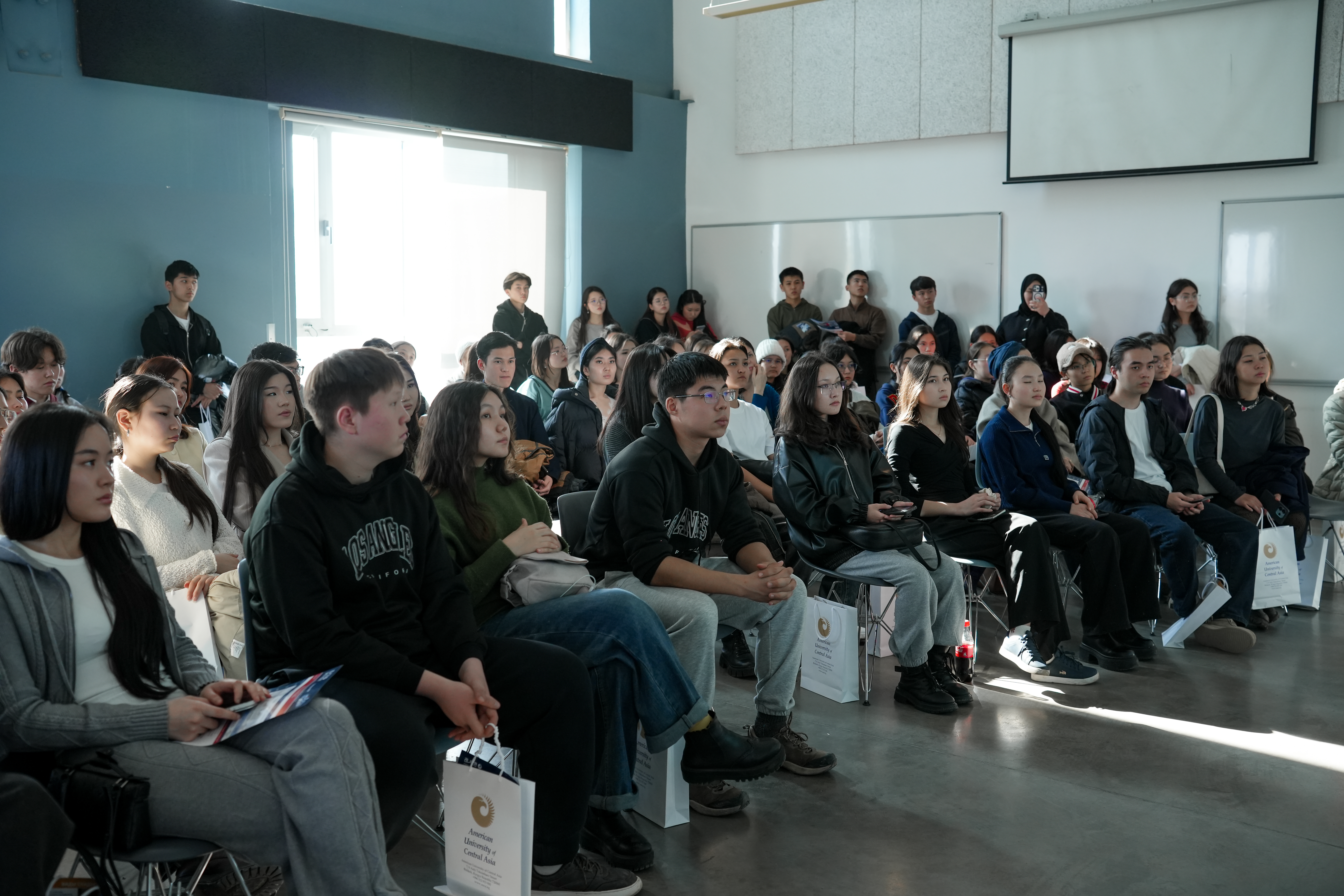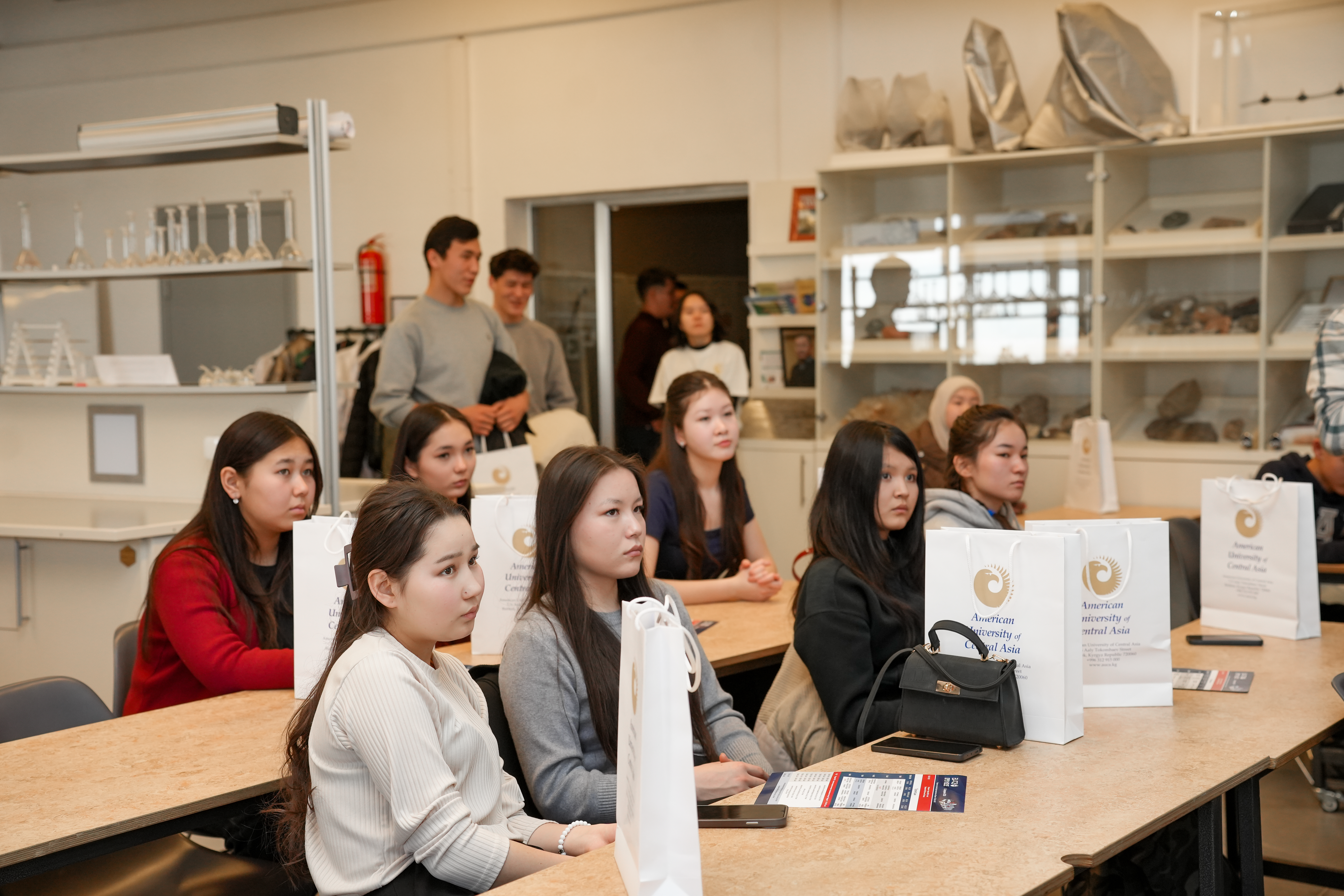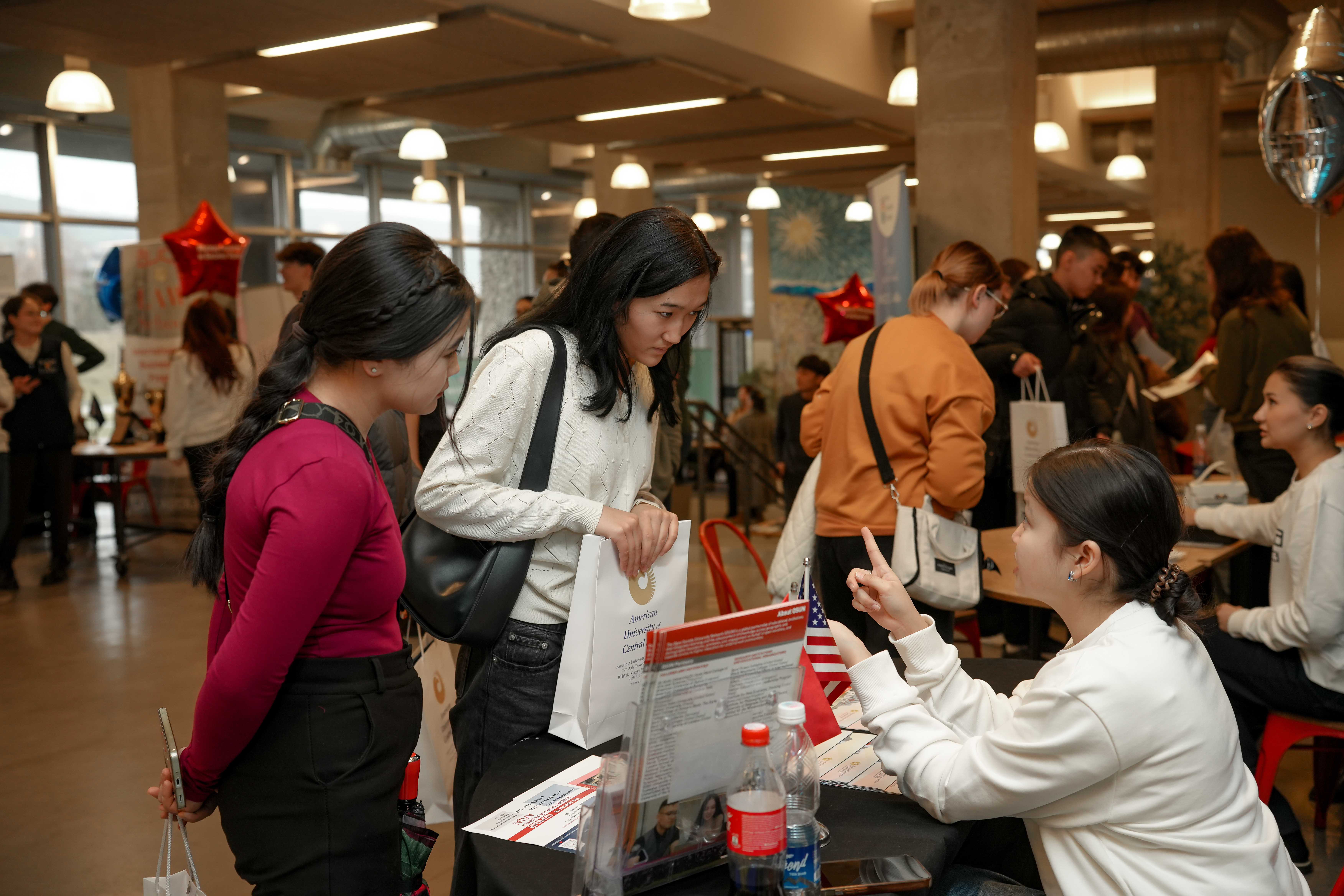 Campus tours allowed visitors to explore classrooms, the library, the kitchenette, and student spaces, giving them a clearer understanding of everyday life at AUCA. In addition, detailed information was provided about admission requirements, entrance exams, scholarships, and financial aid opportunities. International exchange programs and global partnerships were highlighted as important components of the AUCA experience.